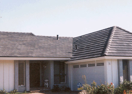 For this Irvine project, we removed the old wood shake roof and installed ½" OSB plywood, edge metal, eaveriser, and double 30 lb felt. The roof was finished with EagleLite Ponderosa Flat Shake tiles, delivering a modern, durable roof that meets strict Southern California fire and performance standards.